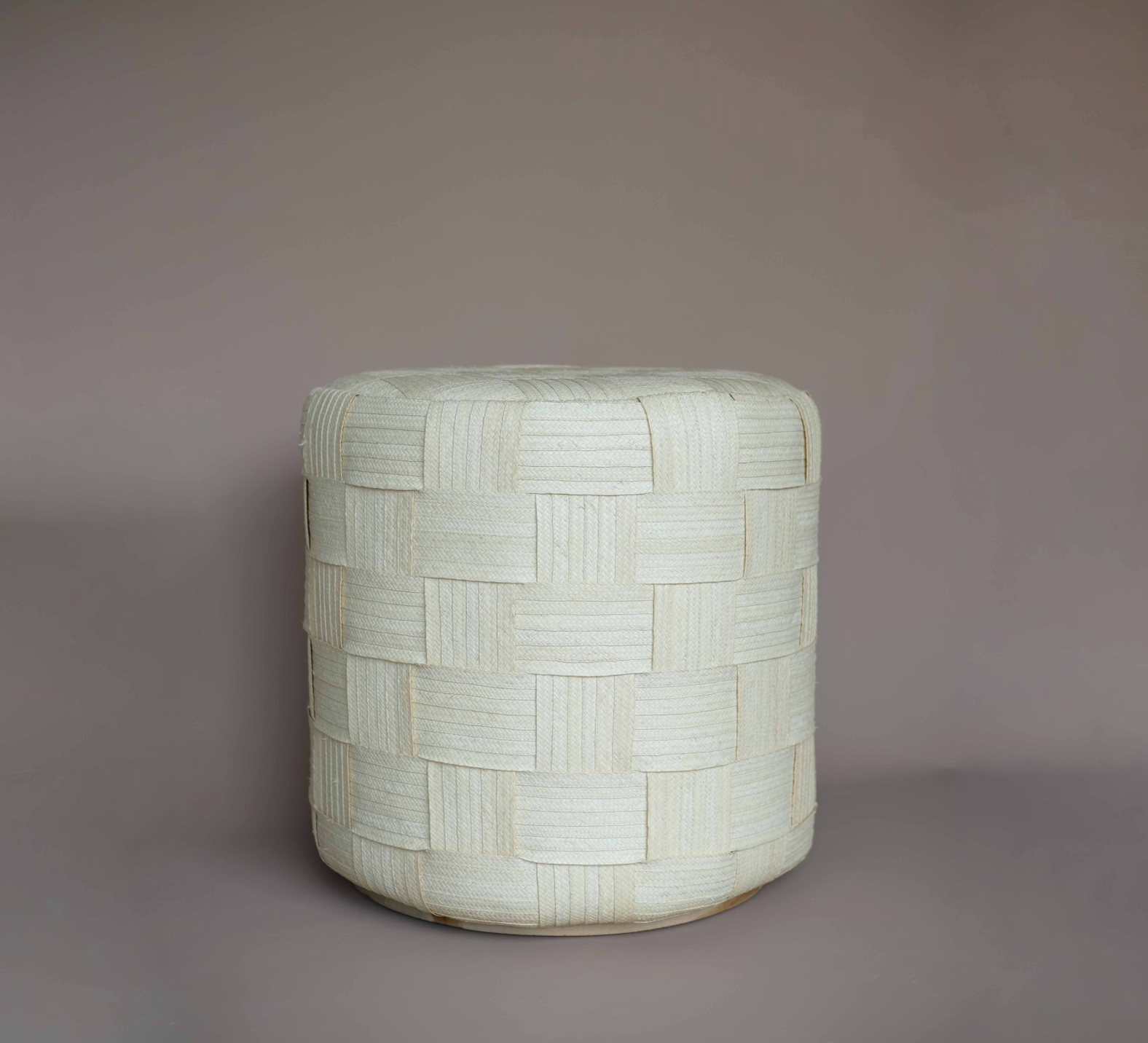 Handwoven using caña flecha, the piece highlights the material’s natural texture while introducing a more architectural form. Designed to function as seating, a side table, or a sculptural piece.